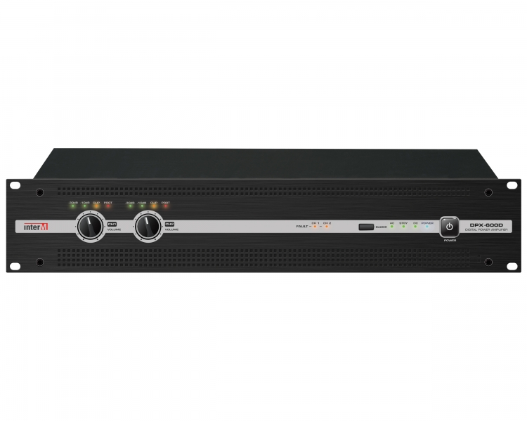 The Inter-M DPX-600D is a high-performance 2U digital power amplifier engineered for reliability and clarity in commercial sound and public address applications. Delivering 600W across two channels, the DPX-600D offers pristine audio reproduction, high signal-to-noise ratio, and a comprehensive suite of protection and monitoring features.